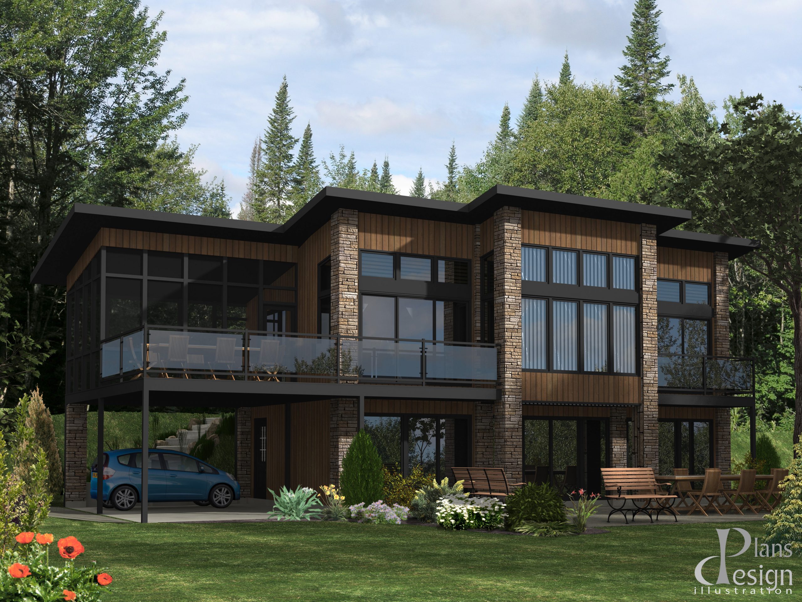 - Balcon à l’étage, abri de voiture et terrasse couverte.